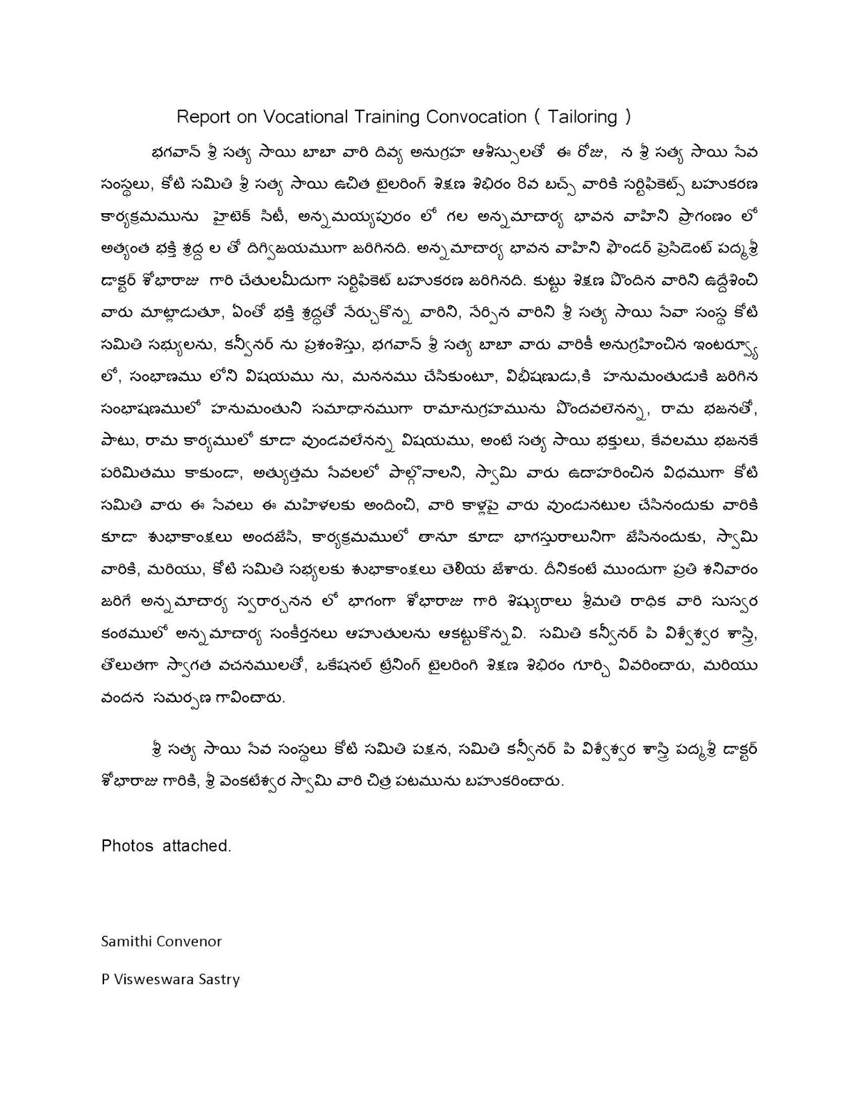 Invitation,Photos, Video Links, press clippings of 8th Batch Vocational Training Convocation. 30-6-2018